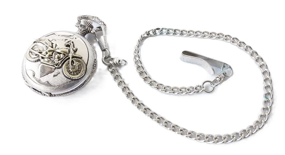 - Benrus Pocket Watch With Raised Motorbike Design