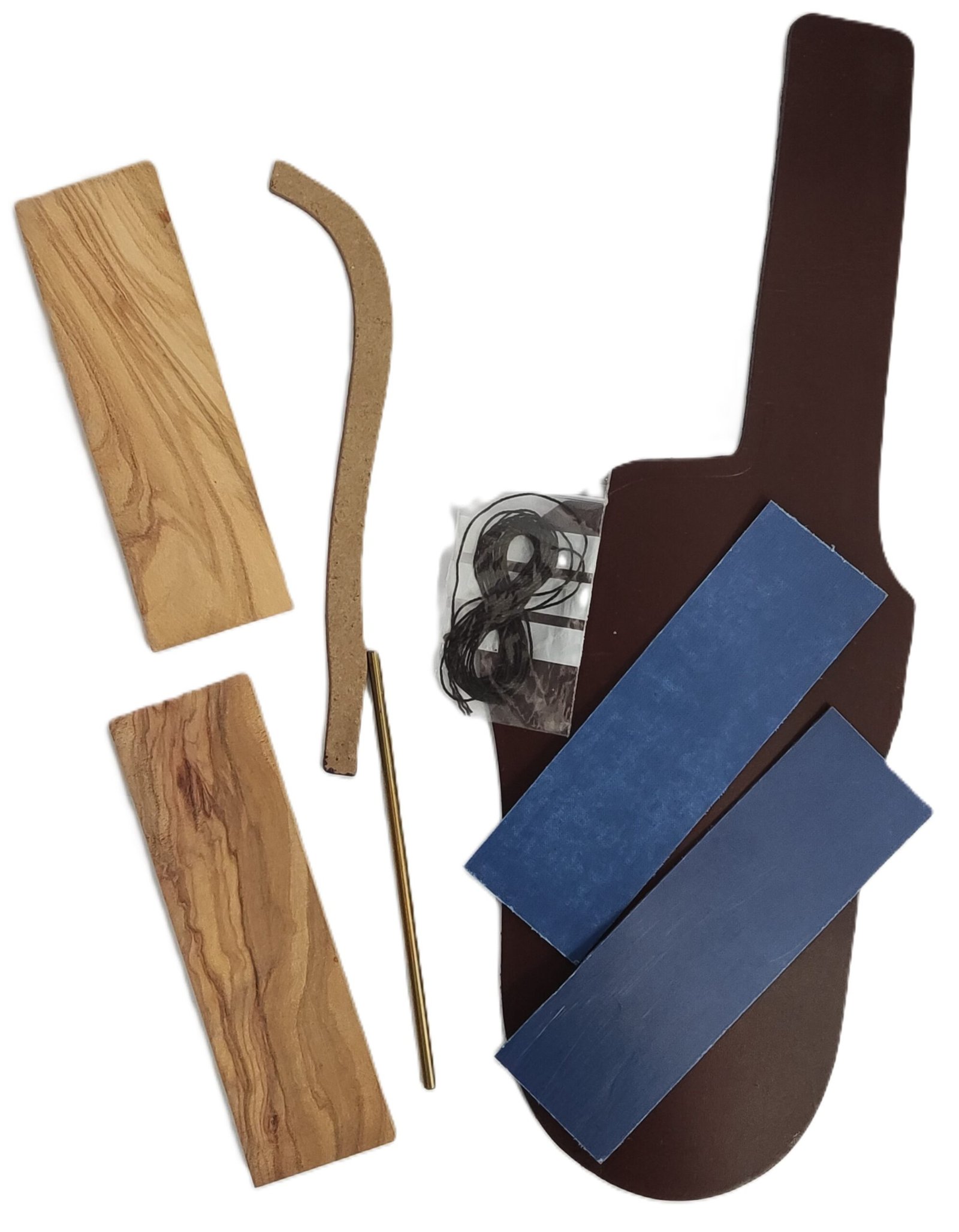 Kit Contains: Blade. Handle Materials, Sheath Materials, Assembly Hardware, Finishing Supplies, Instructions