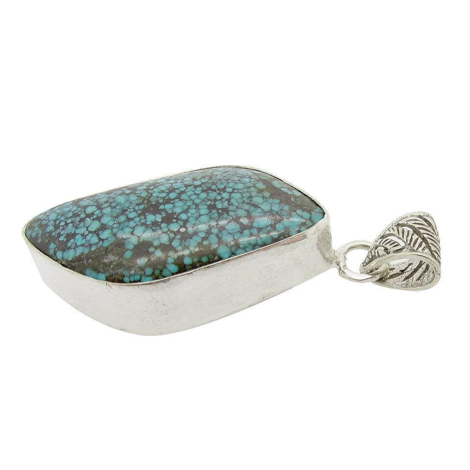 - Large Silver Chrysocolla Gemstone Drop Pendant