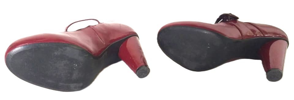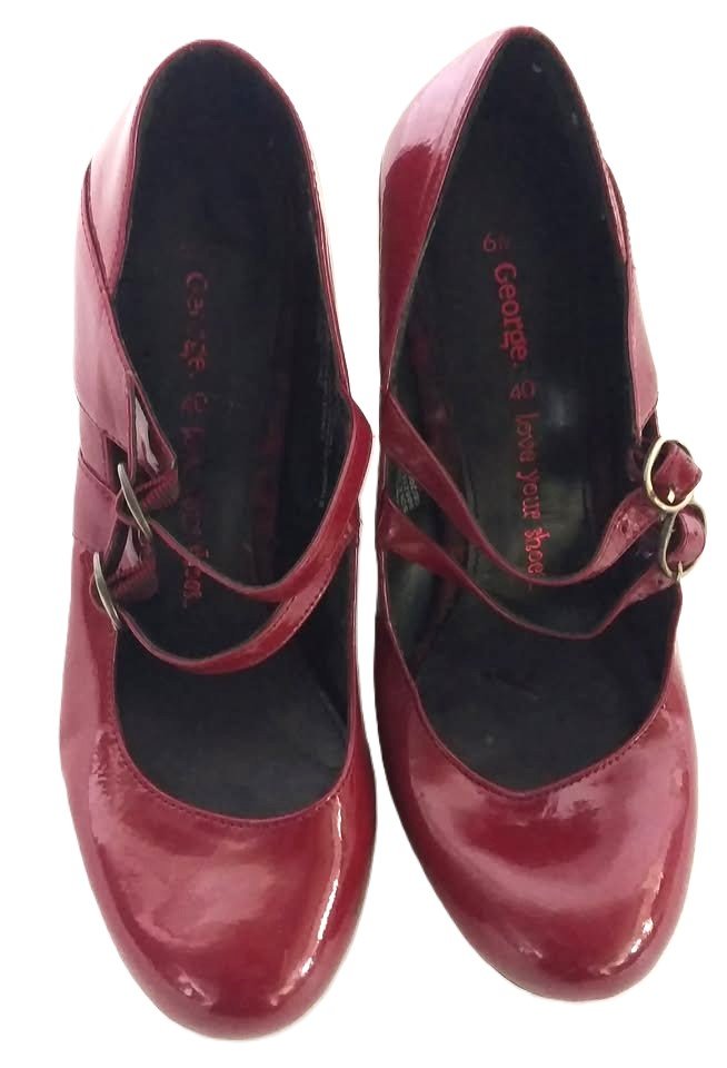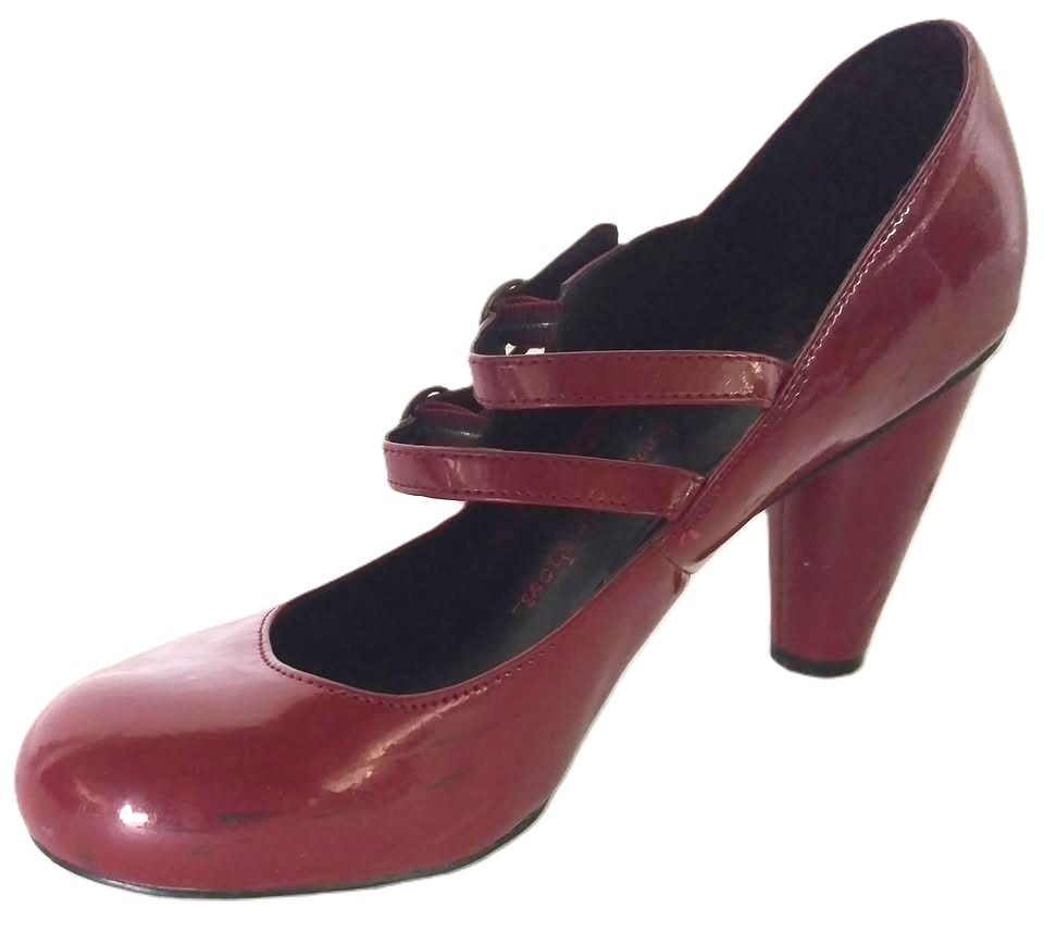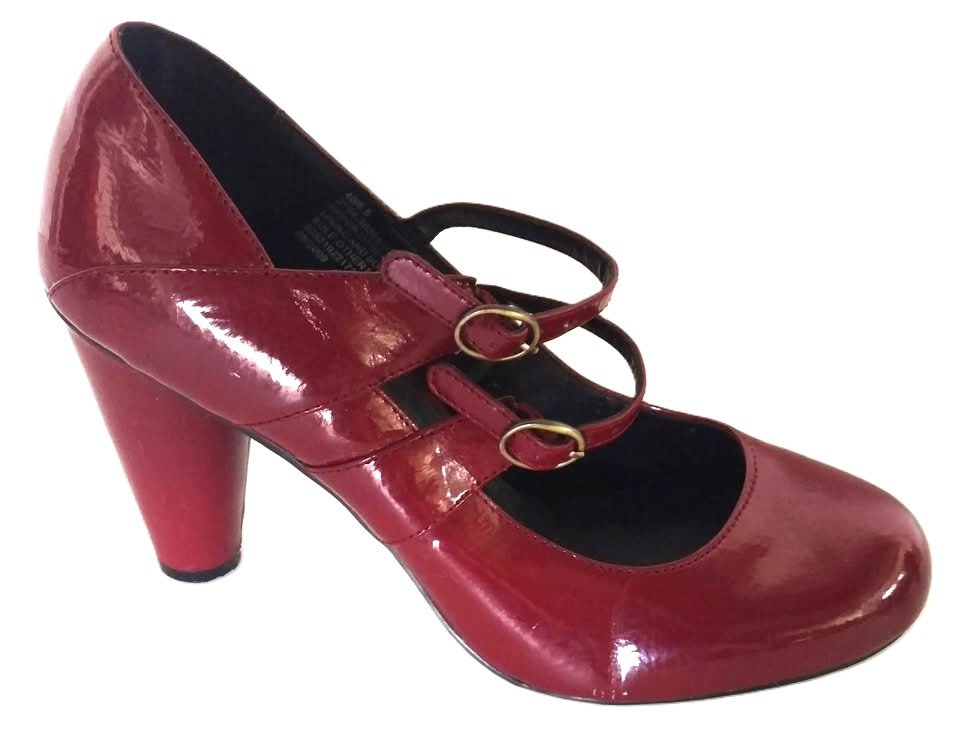 Red Patent High Heel Shoes With Double Buckle