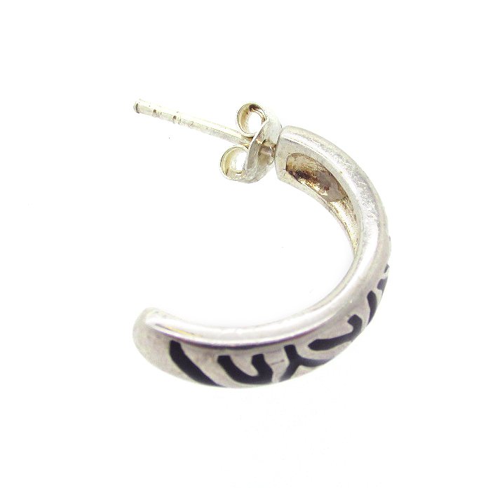 - Sterling Silver Half Hoop Earrings With Black Engraved Markings