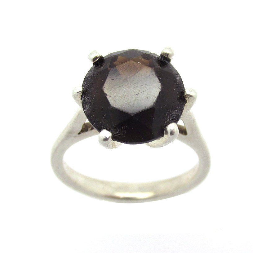 - Sterling Silver Large Solitaire Ring with a Round Smokey Quartz Stone
