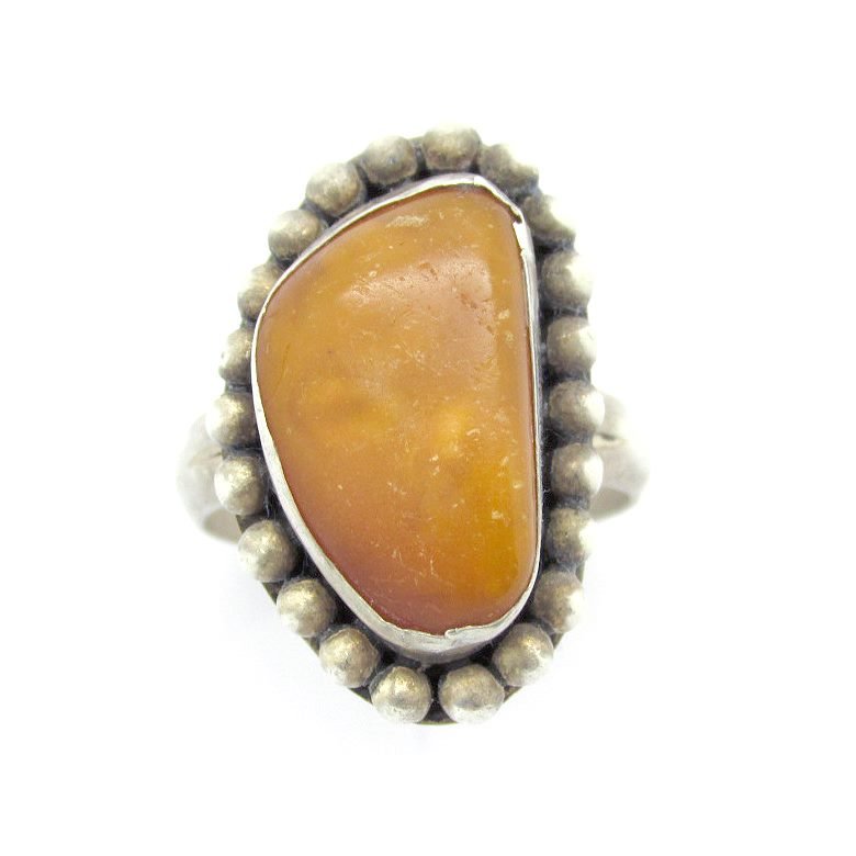 Sterling Silver Ring Set with Large Amber Coloured Stone