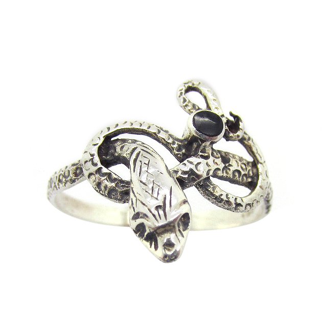 - Sterling Silver Snake Shaped Ring with Black Stone