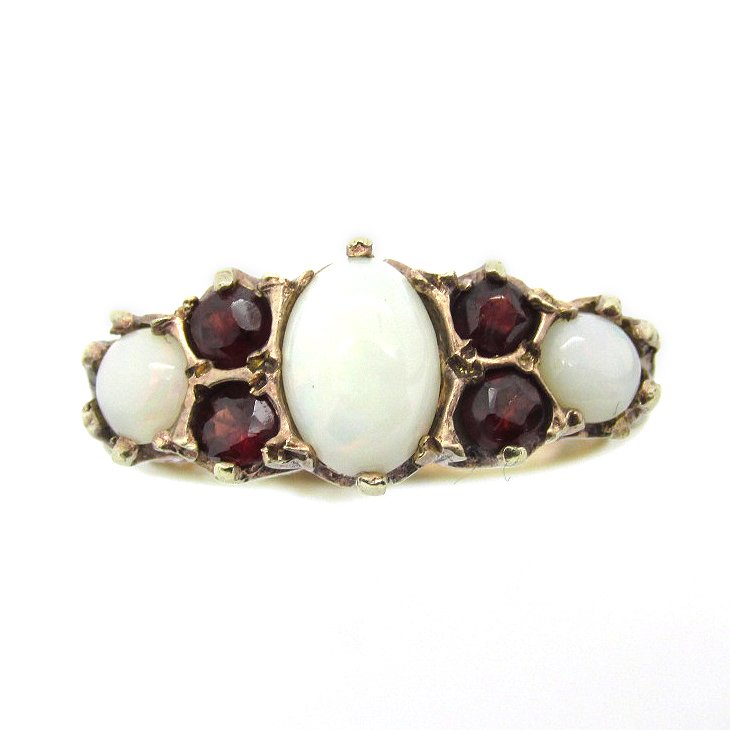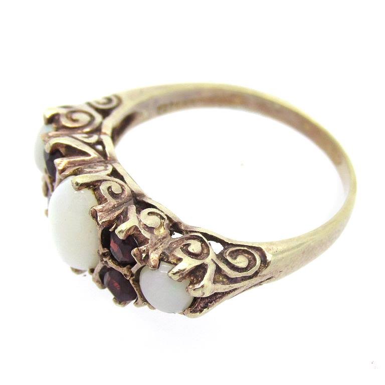- Vintage Victorian Sterling Silver Gold Plated Ring Set With 3 Fire Opals & 4 Garnets